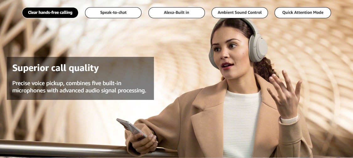 The well-known & most features enabled true wireless noise-canceling headphones with over 30 hours of playtime. Best for listening to music, calling, and controlling everything via Alexa voice control. Also, they have got a touch control sensor to pause, play, skip tracks, control volume, activate voice assistant, and answer your phone calls quickly.